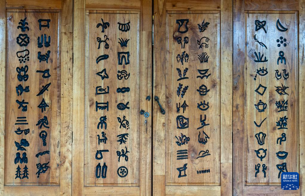 這是7月30日拍攝的刻在坡芽村坡芽傳習館門板上的81個“坡芽情歌”圖畫符號。