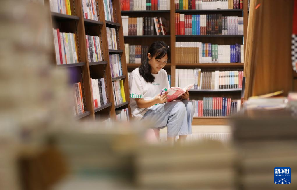 8月1日,一名學生在湖南省衡陽市衡陽縣一家新華書店閱讀。