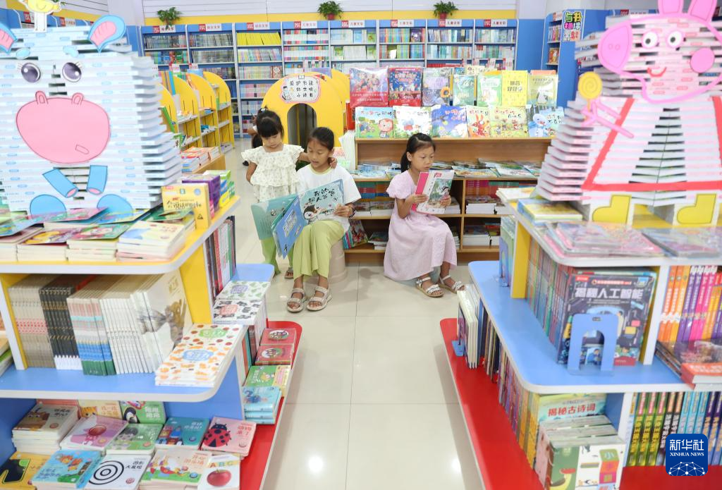 8月1日,在湖南省衡陽市衡東縣新華書店,幾名小朋友在閱讀。
