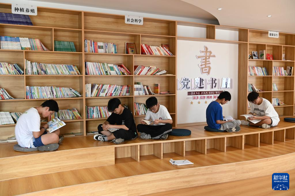 7月31日,在河南省沁陽市西萬鎮校尉營村黨建書屋,幾名學生在閱讀。
