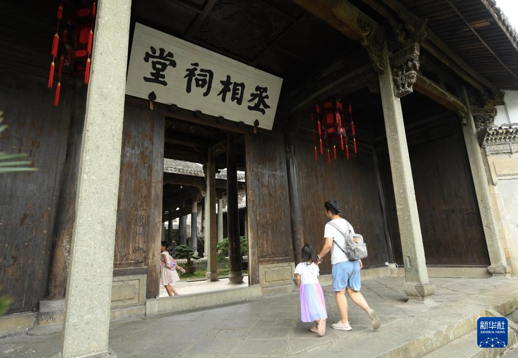 8月1日,游客在諸葛村丞相祠堂參觀游覽。