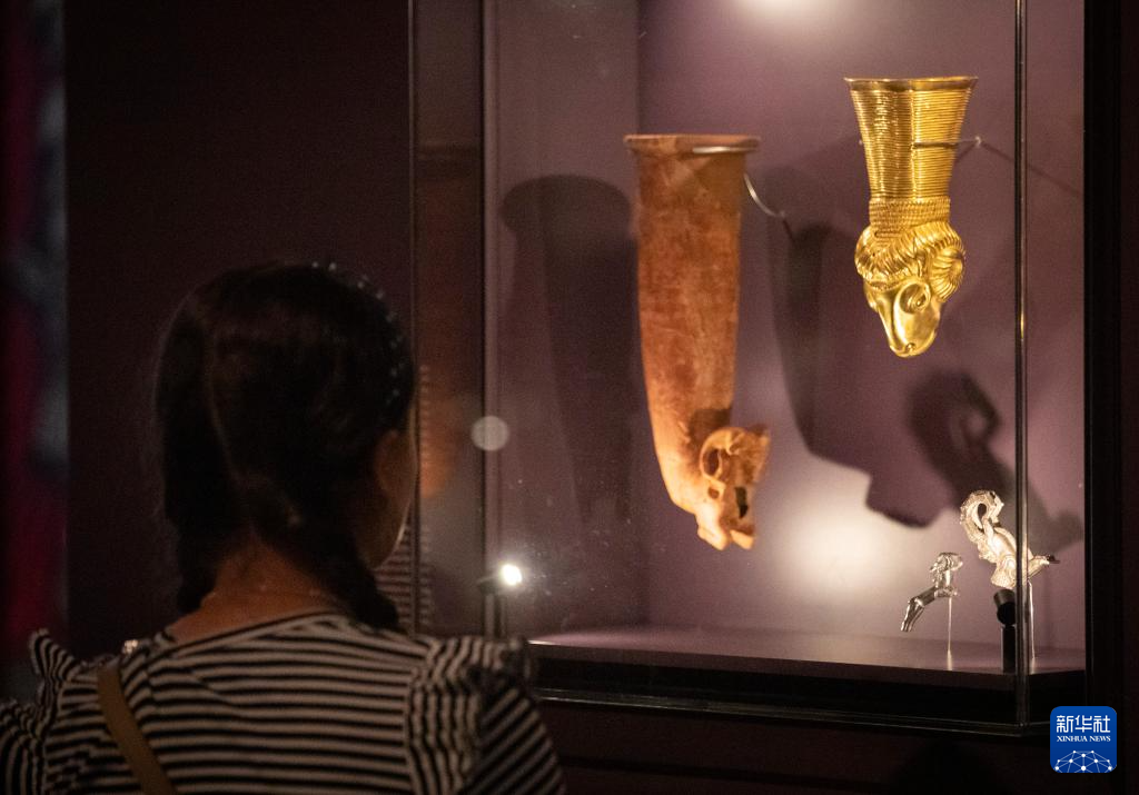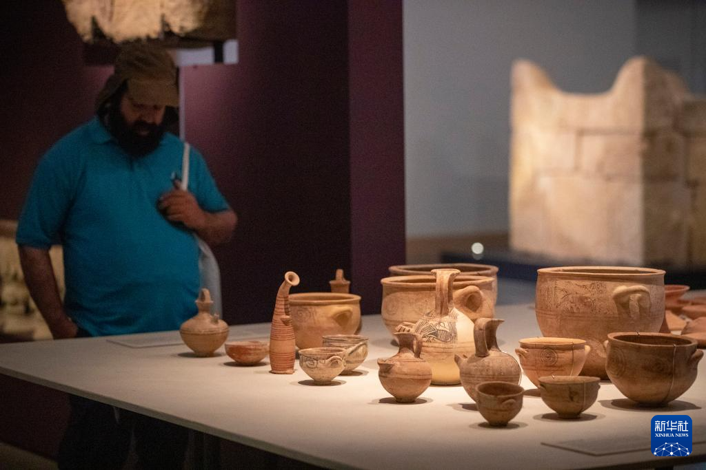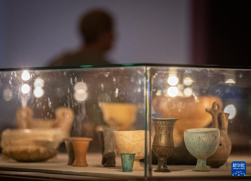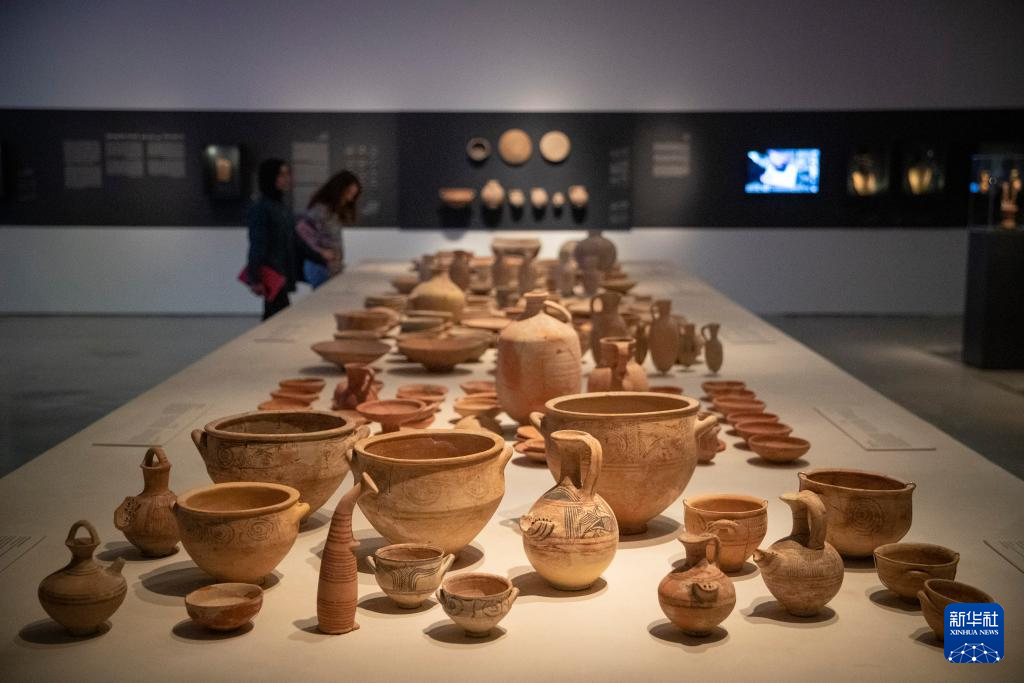 8月2日,參觀者在位于西耶路撒冷的以色列博物館觀看古代宴會所用的酒器。