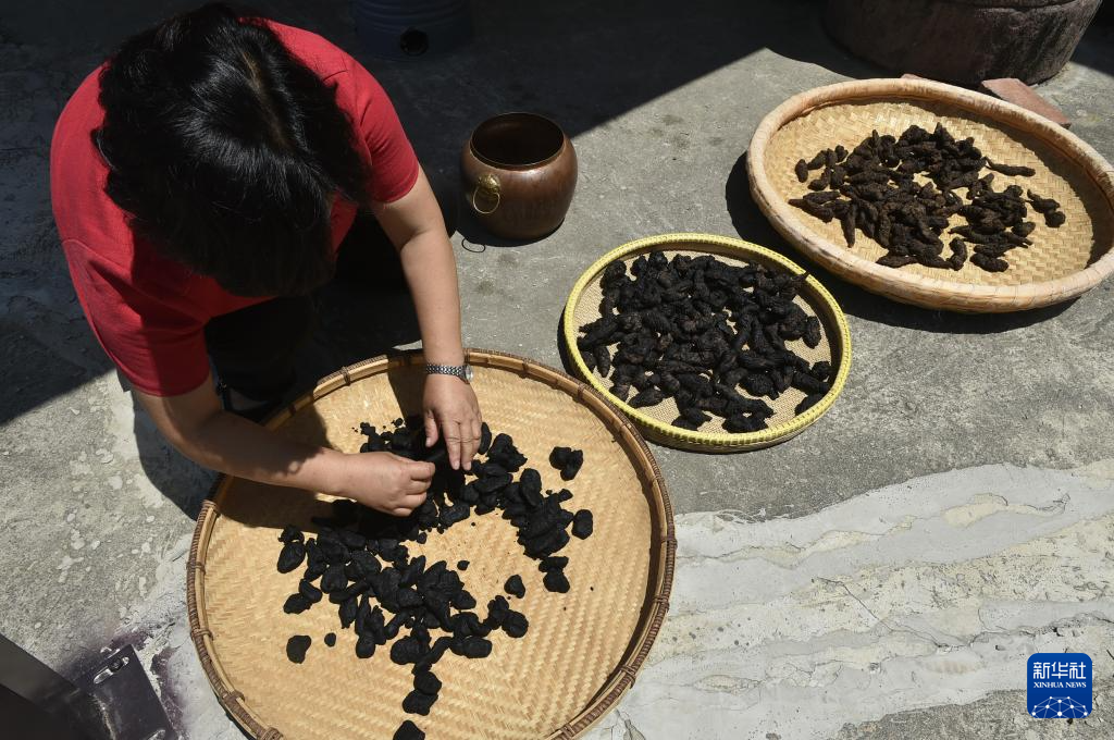 8月4日,在禹州中醫藥文化技藝傳習館,非遺項目“禹州中藥加工炮制技藝”代表性傳承人朱改蓮展示中藥材“九蒸九曬”加工技藝。