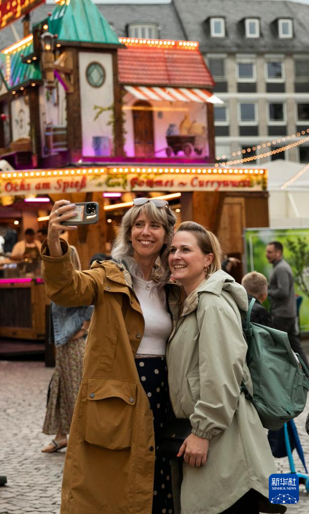 8月4日,人們在德國法蘭克福的“美因河節”現場自拍。