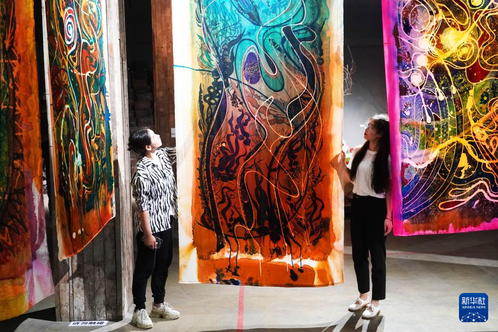 8月8日,在位于北京市平谷區的萬圣谷美術館,觀眾參觀藝術作品。