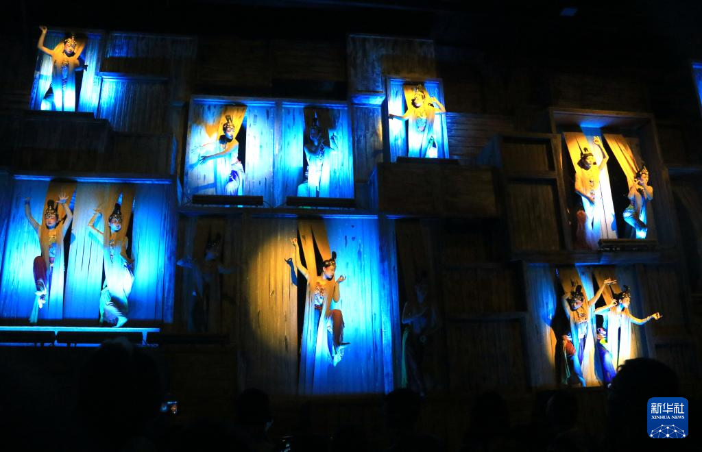 今年以來,脫胎于敦煌文化的洞窟沉浸式體驗劇《樂動敦煌》、室內情景體驗劇《又見敦煌》、沙漠實景演出《敦煌盛典》和中國殘疾人藝術團情景音畫劇《千手千眼》四場劇目在絲路名城甘肅敦煌同步上演,劇目將敦煌歷史底蘊、服飾文化、樂舞文化等生動融合,為游客呈現出精彩絕倫的敦煌文化視覺盛宴,深受中外游客喜愛。截至8月10日,四大劇目今年已累計演出1175場次,觀看游客突破66萬人次。其中,《又見敦煌》從敦煌悠久的歷史文化中選取典型場景、線索人物,串起劇情的故事脈絡,采用“流線式”空間體驗方式演出,讓觀眾在演出中步行“穿越”藏經洞、莫高窟以及絲綢之路,身臨其境感受敦煌文化和絲路文化。