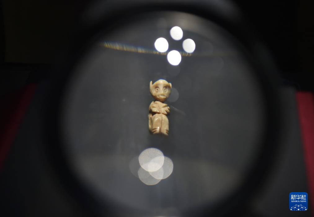 這是8月12日在位于河南省洛陽市偃師區的二里頭夏都遺址博物館拍攝的骨猴。