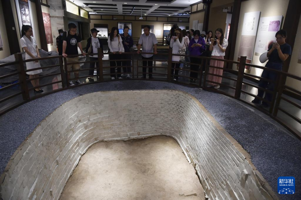 8月8日,參加集中采訪的媒體記者在位于河南省鄭州市的古滎漢代冶鐵遺址博物館參觀采訪。