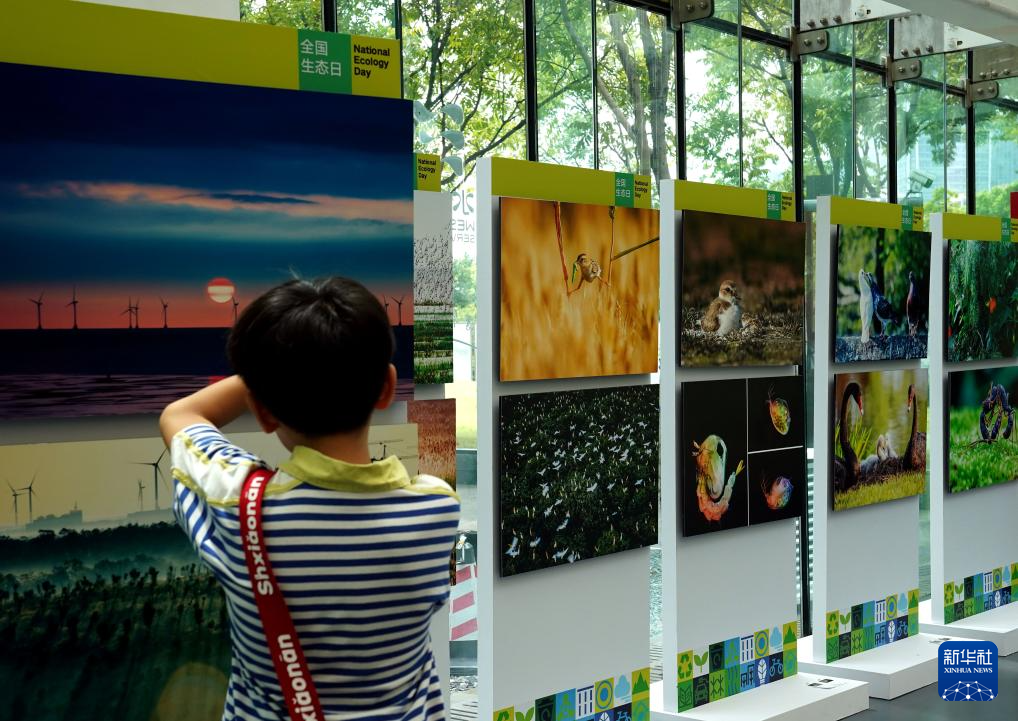 8月15日,觀眾在藝術節現場參觀生態主題攝影作品。