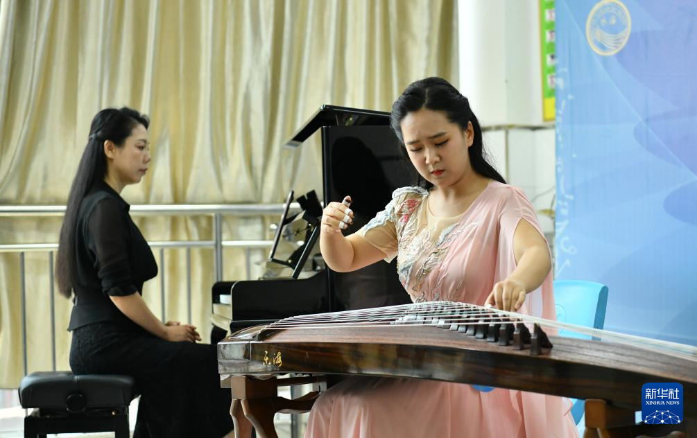 8月16日,參賽選手在古箏比賽中。