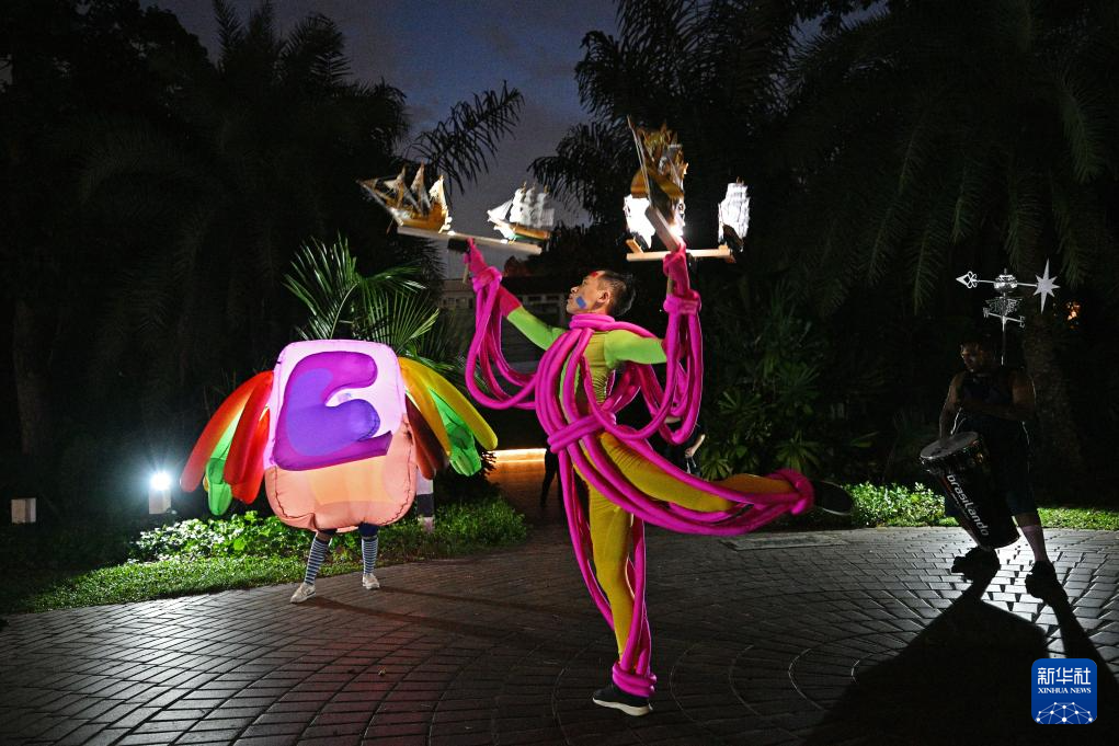 8月16日,表演者在新加坡舉行的“新加坡仲夏夜空”藝術活動預展上進行藝術表演。
