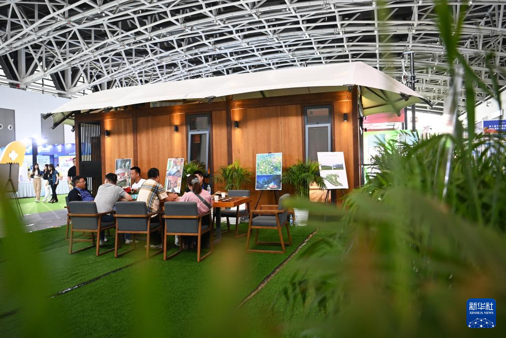 8月17日,參觀者在文旅融合館了解戶外品牌