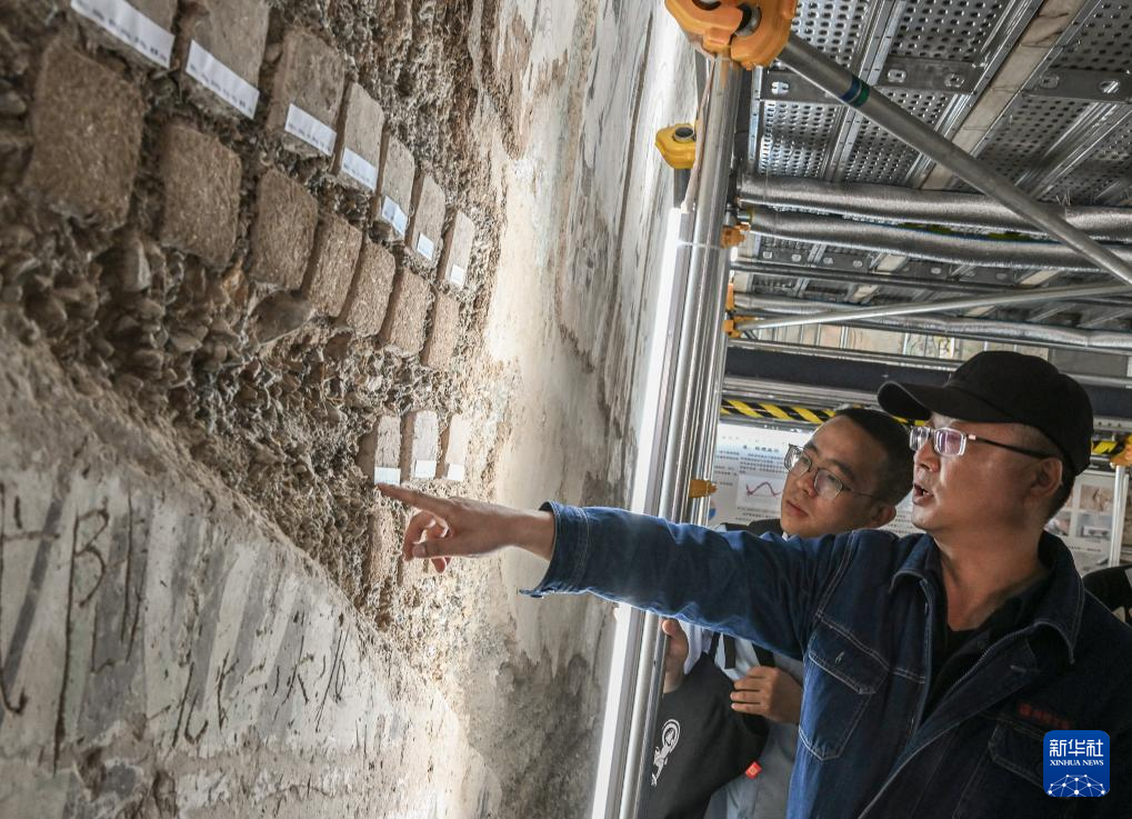 在敦煌研究院多場耦合實驗室內,一位工作人員介紹針對陜西西安秦東陵模型所進行的環境模擬實驗情況(8月3日攝)。