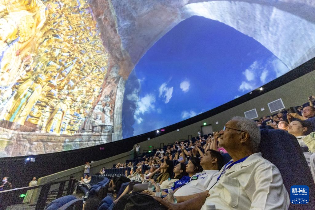 8月19日,嘉賓在重慶市大足區觀看8K球幕電影《大足石刻》。