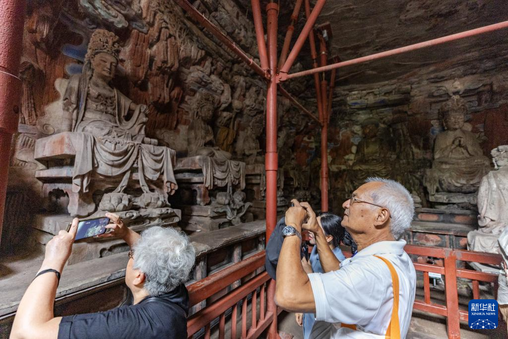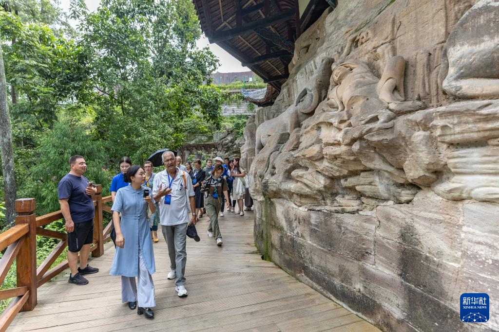 8月19日,嘉賓在大足石刻寶頂山景區內參觀。