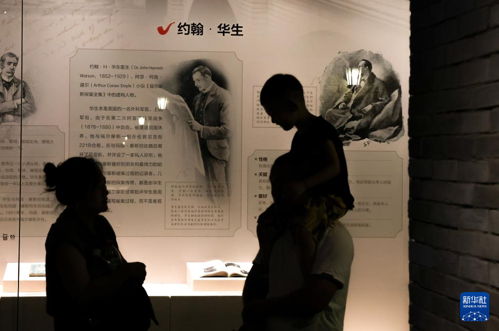 8月20日,小朋友與家長觀看“福爾摩斯大型沉浸式主題展”。