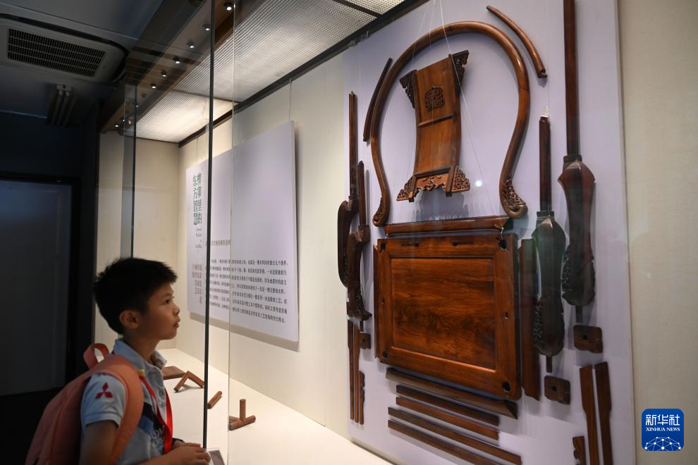 8月21日,觀眾參觀展出的京作皇宮椅部件。