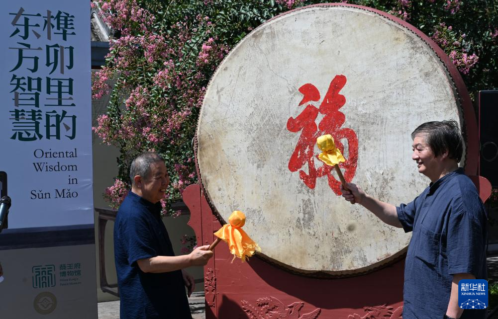 8月21日,京作硬木家具制作技藝國家級代表性傳承人種桂友(左)、明式家具制作技藝國家級代表性傳承人許建平共同為展覽擊鼓開幕。