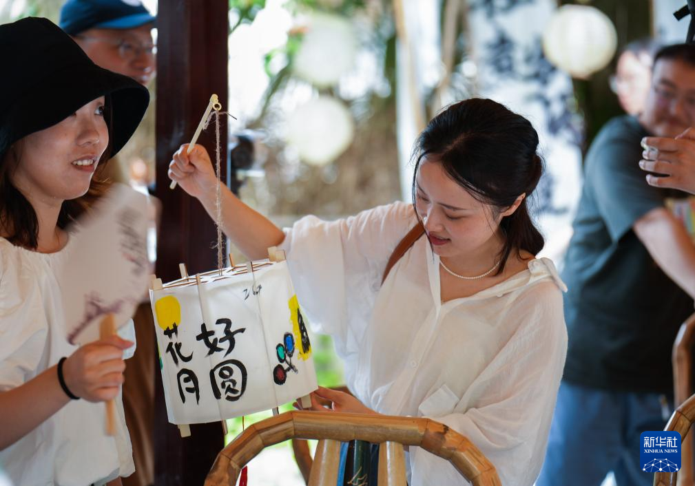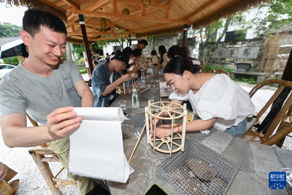 8月20日,青年在東白湖鎮“七夕”聯誼活動的“乞巧雅集”游玩。