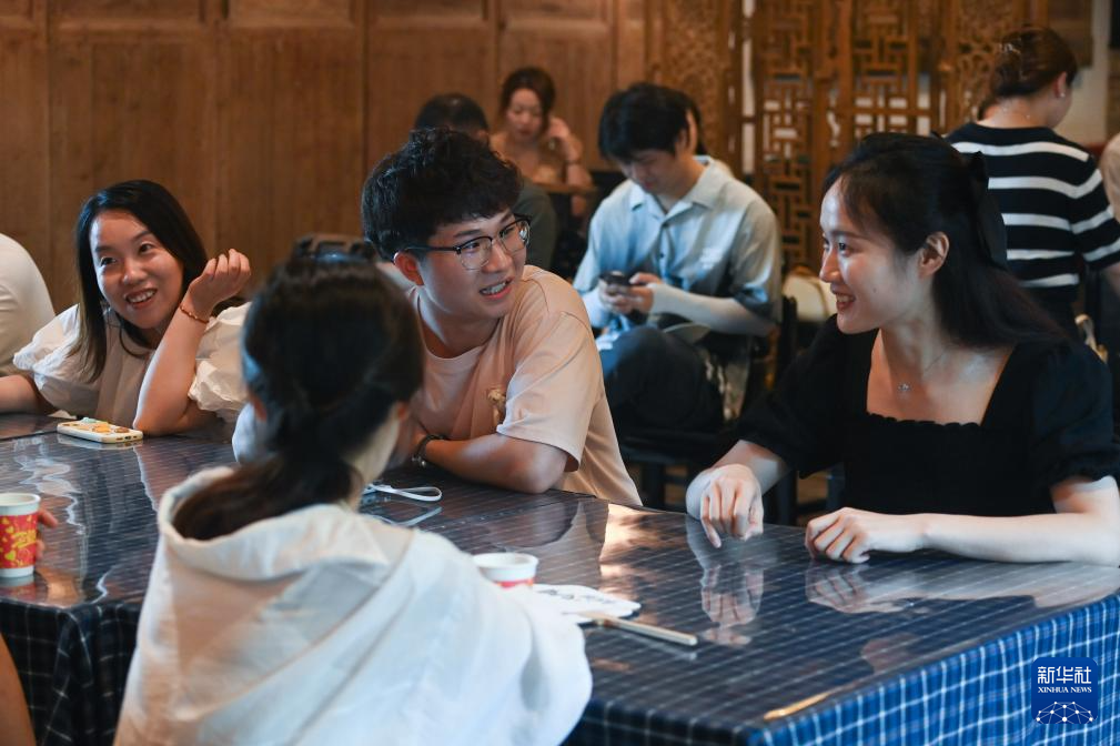8月20日,“‘才’匯七夕·‘緣’來諸暨”青年人才七夕聯誼活動在浙江省諸暨市東白湖鎮舉行,“十里紅妝”“尋愛之旅”“彩繪紙傘”“乞巧祈?!薄粋€個具有傳統文化韻味的游戲活動,讓在場的單身青年人才沉浸式體驗豐富多彩的民俗文化,交友結緣。