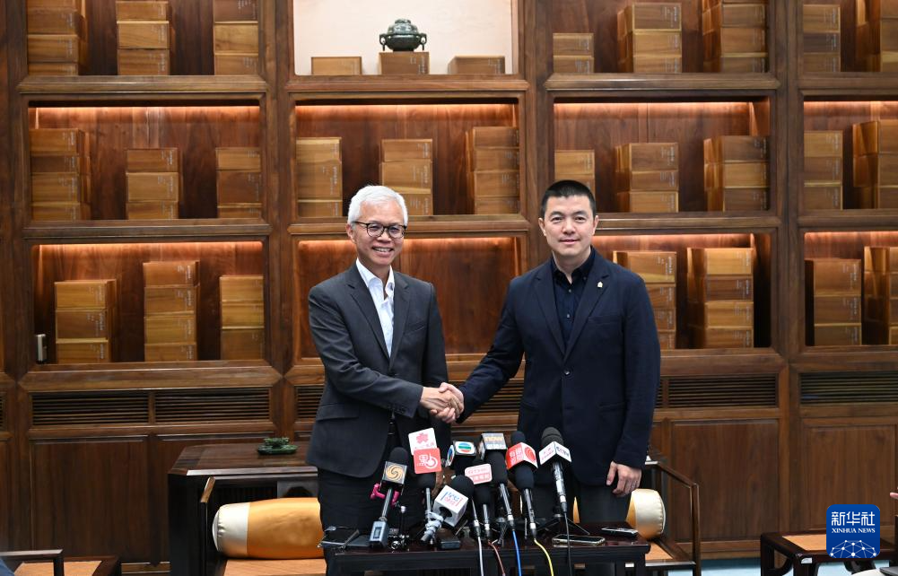 8月22日,故宮博物院常務副院長婁瑋(右)、香港故宮文化博物館館長吳志華在北京故宮博物院接受采訪。新華社記者 金良快 攝