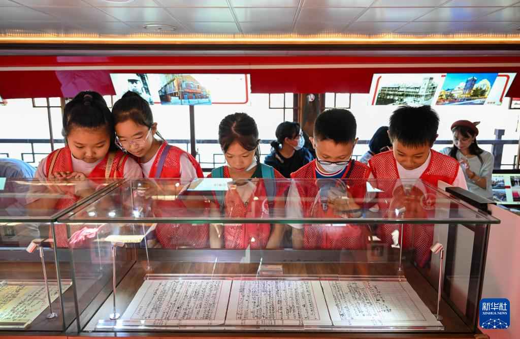 8月29日,小朋友參觀完展覽后走下海河游船,前往李叔同故居紀念館。