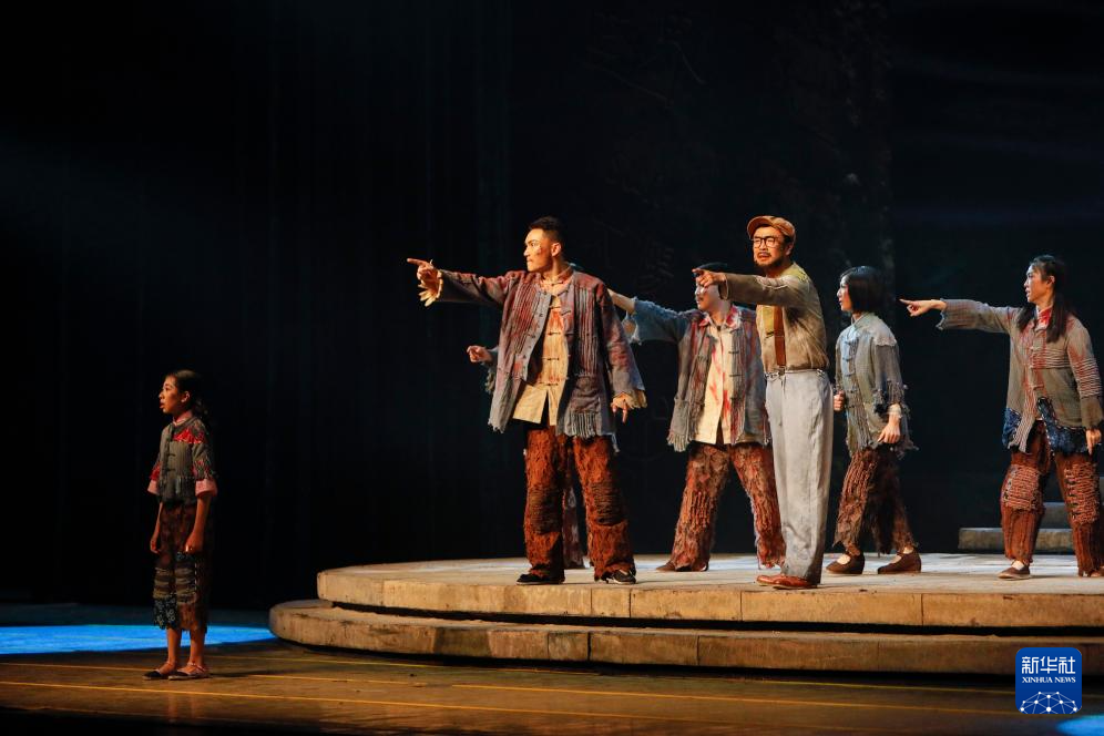 8月29日晚,演員在蘭州音樂廳表演新版紅色兒童劇《大豆謠》。