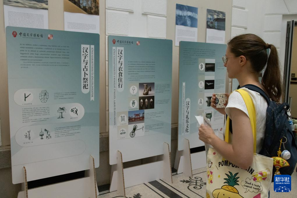8月29日,嘉賓在匈牙利布達佩斯參觀“漢字與中華文明”展。
