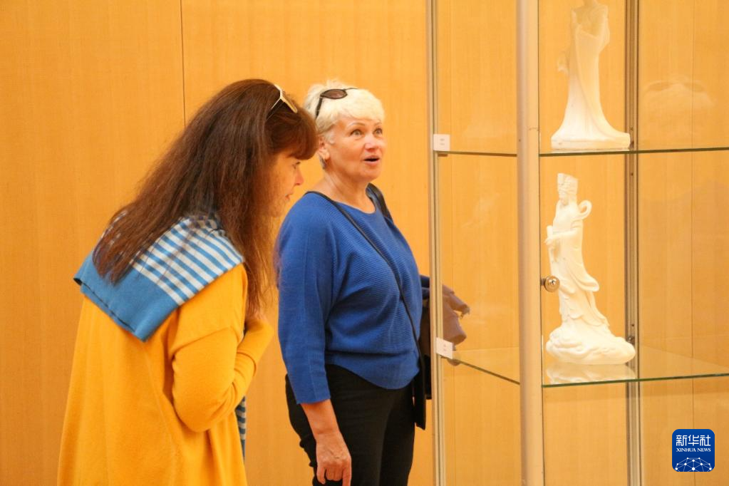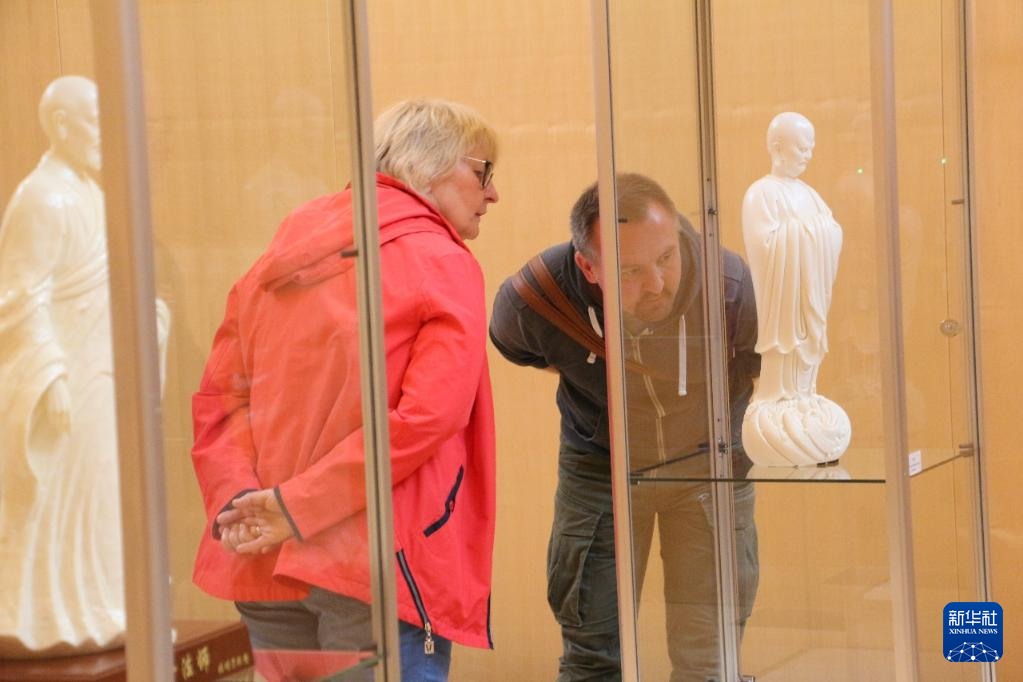 8月29日,參觀者在德國法蘭克福的“中國白·德化瓷”國際巡展上欣賞展品。新華社發(李帥攝)