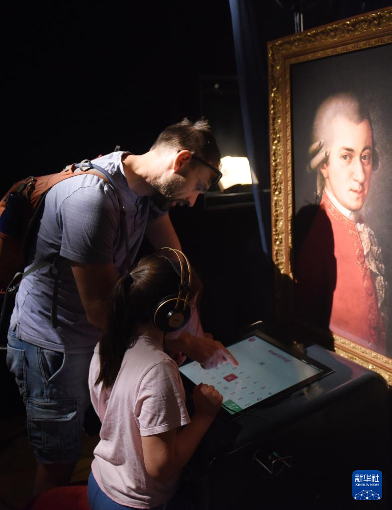 9月2日,在奧地利維也納“音樂之家”,觀眾通過擲骰子游戲的交互方式體驗樂曲創作。