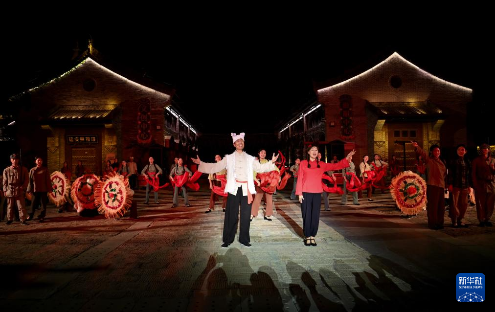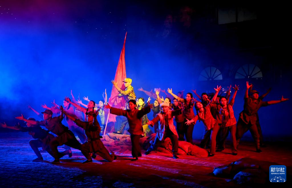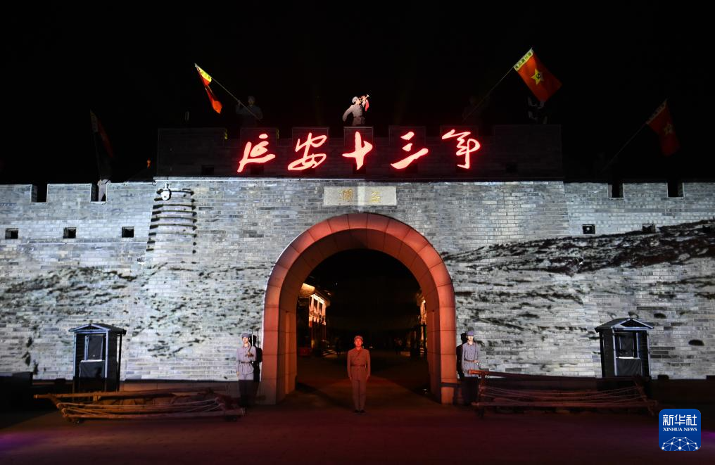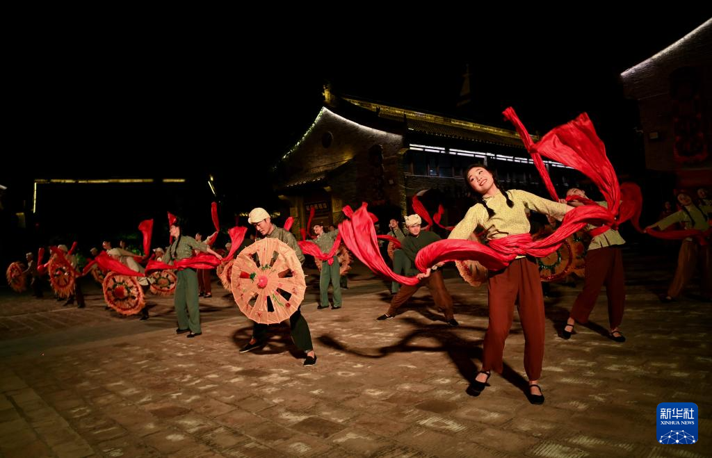 8月31日,演員在陜西延安的金延安文化旅游產業園區表演紅色歌舞劇《延安十三年》。