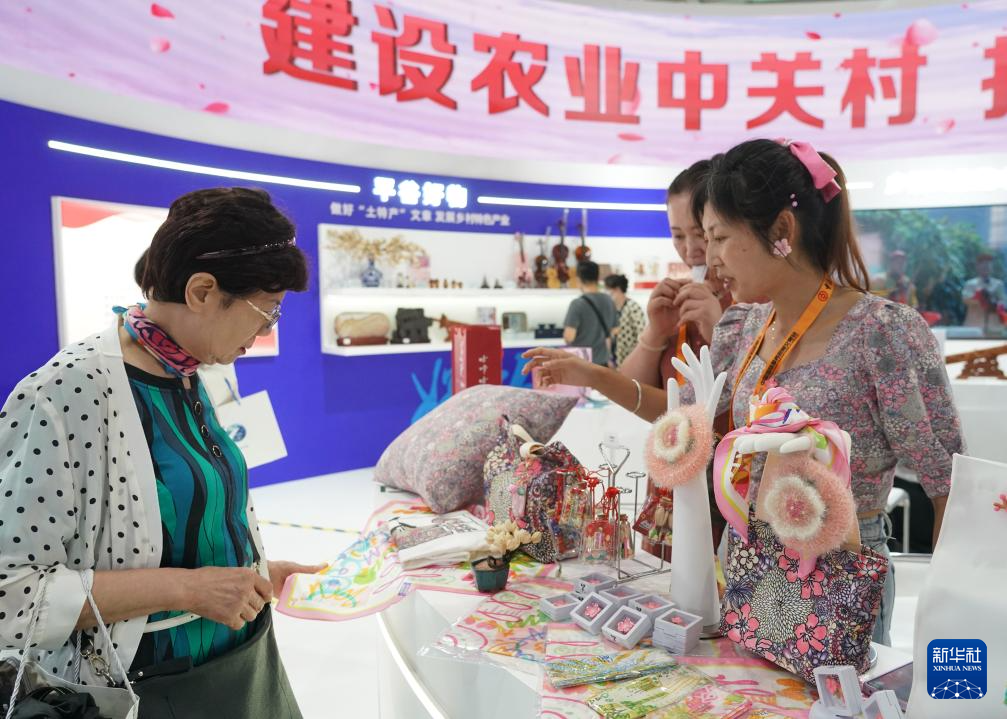 9月6日,觀眾在服貿會文旅服務專題展區“公園禮物”展位選購北京市各公園的文創產品。