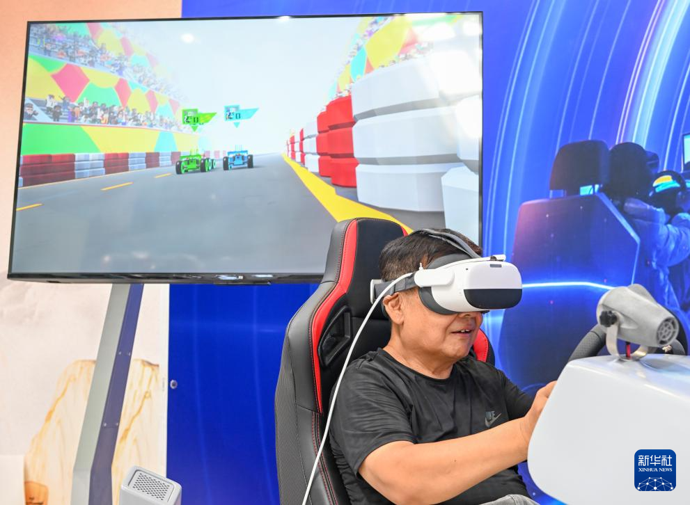 9月6日,觀眾在服貿會文旅服務專題展區體驗VR游戲。
