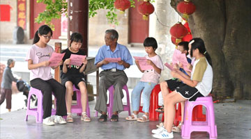 9月6日,游客在游覽湖州市吳興區織里鎮義皋古村落。