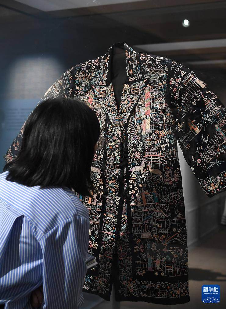9月7日,媒體記者在展覽上觀看一款民國時期西式長款女上衣。新華社記者 陳鐸 攝