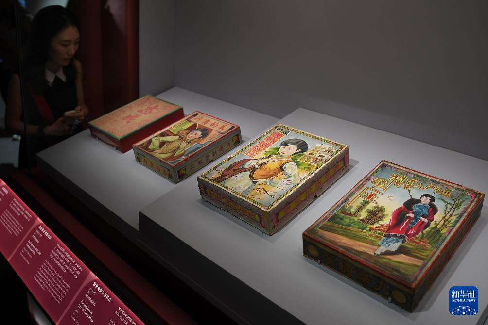 9月7日,媒體記者在展覽上觀看十九世紀和二十世紀澳門服飾包裝盒。新華社記者 陳鐸 攝