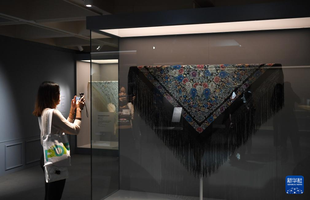 9月7日,媒體記者在展覽上拍攝一款披肩。新華社記者 陳鐸 攝
