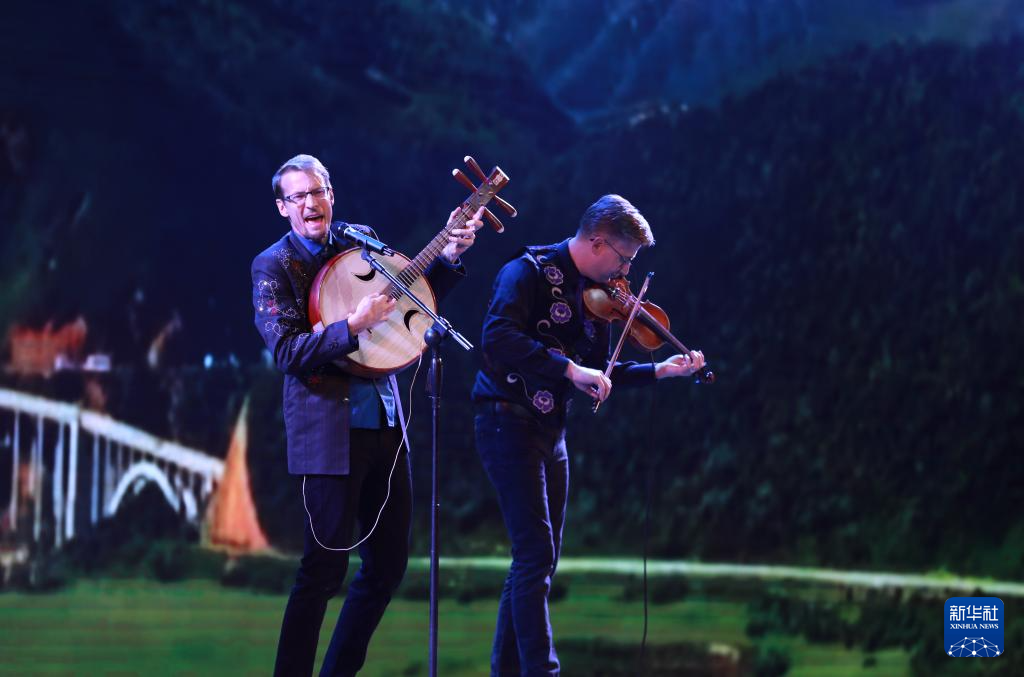 9月6日,來自美國的樂隊在《相約敦煌》文藝晚會上表演。