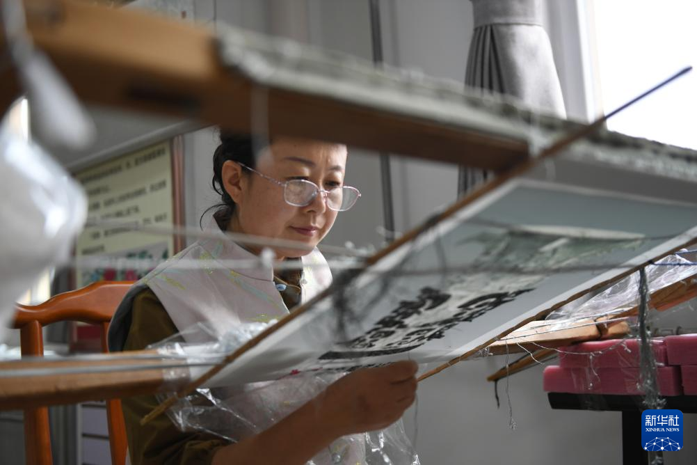 9月8日,在寶雞西秦刺繡文化產業園,千陽繡娘在繡制工藝品。陜西千陽縣是“西秦刺繡”的重要發祥地和傳承地。近年來,千陽縣將西秦刺繡作為助農增收的重要產業,推動非遺項目產業化發展,助力鄉村振興。