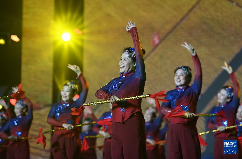 當日,2023年全國廣場舞展演——廣場舞大會天津濱海新區片區大會在濱海新區北塘古鎮舉行,來自北京、天津、黑龍江、吉林、遼寧等省市的16支廣場舞團隊帶來了各具特色的廣場舞作品。