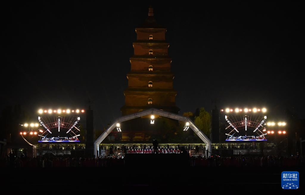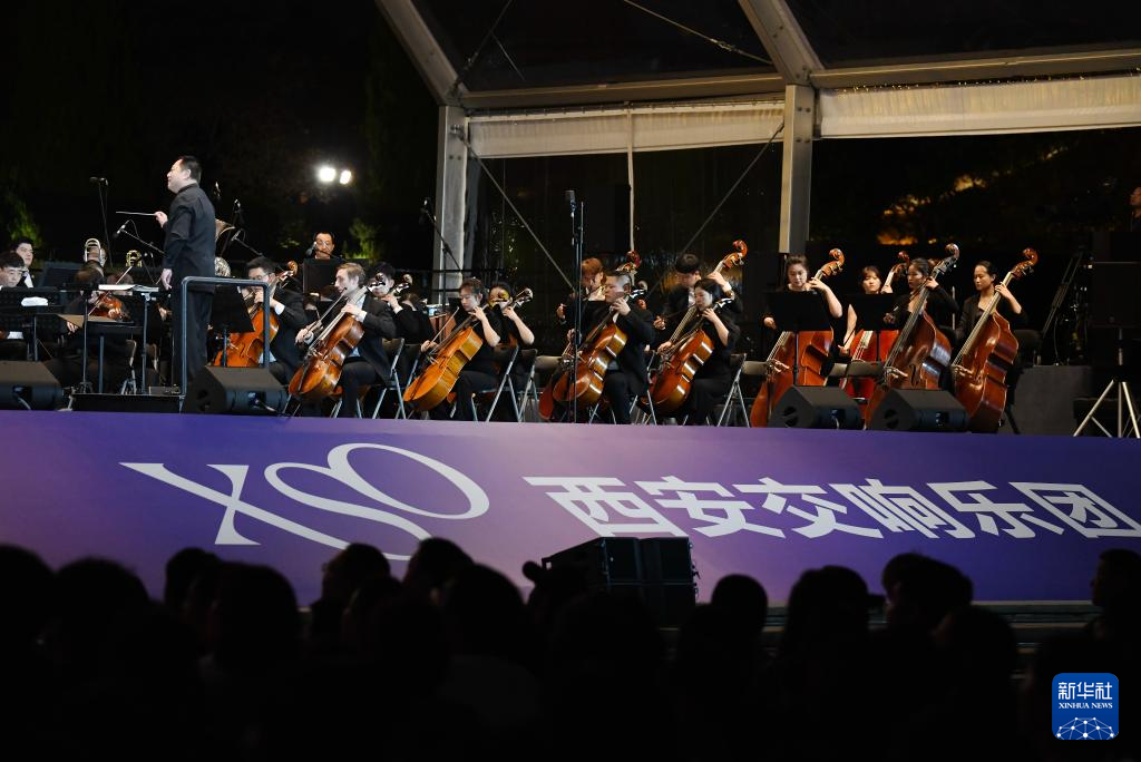 9月10日晚,西安交響樂團在西安大雁塔北廣場戶外公演。