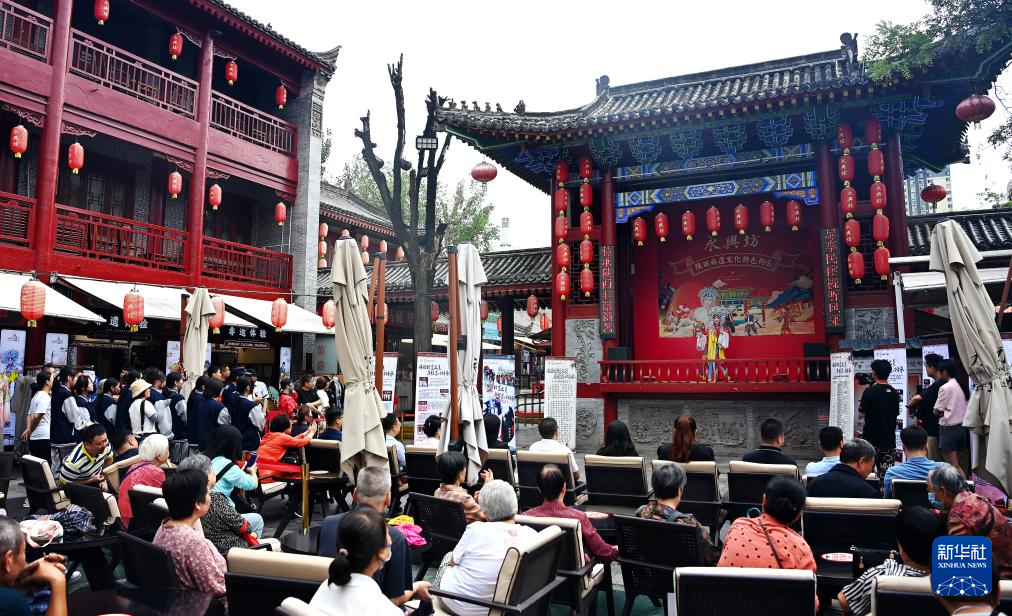 9月12日,西安市新城區“遇見城墻·非遺韻”非遺集市上,觀眾在欣賞陜派相聲表演。