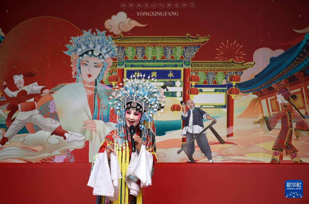 當日,陜西省西安市新城區“遇見城墻·非遺韻”非遺集市主題活動在西安城墻中山門下舉辦。秦腔、華陰老腔等特色非遺節目在永興坊戲樓前輪番表演,皮影、布藝、工藝葫蘆等二十多種非遺作品在順城巷內集中亮相,豐富市民文化生活的同時也讓游客感受到陜西非遺的獨特魅力。