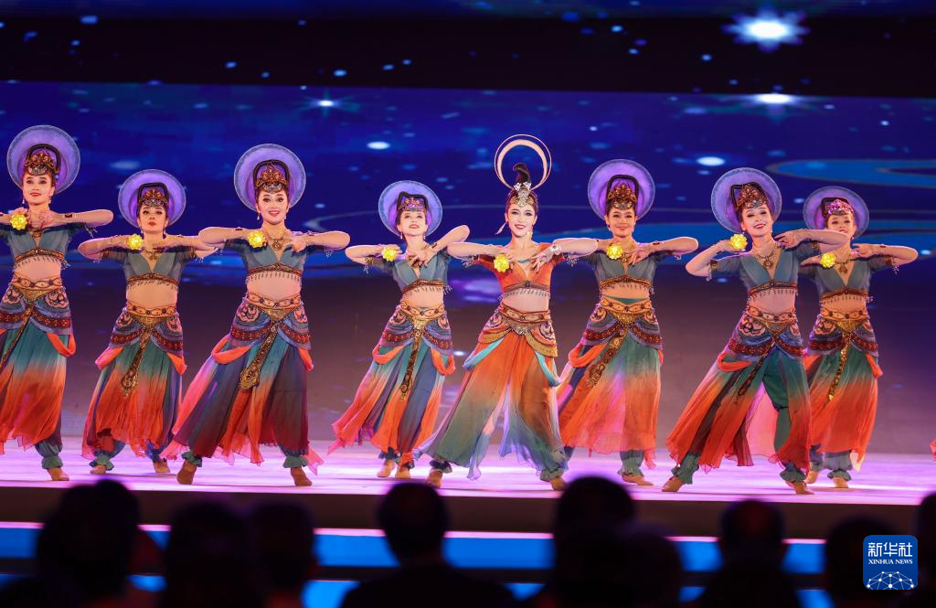 演員在表演歌舞節目《天山共明月》(9月12日攝)。