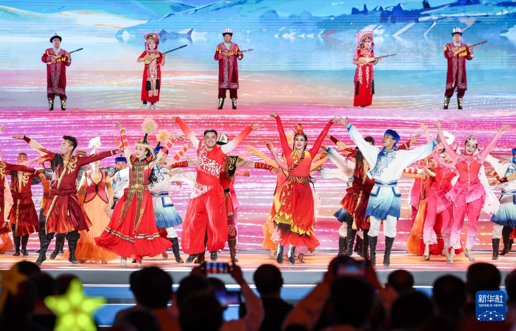演員在表演各民族聯舞《舞動天山》之群舞《中華民族一家親》(9月12日攝)。