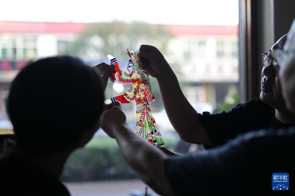 9月13日,市民在河北省樂亭縣一處皮影工坊內了解皮影人制作技術。