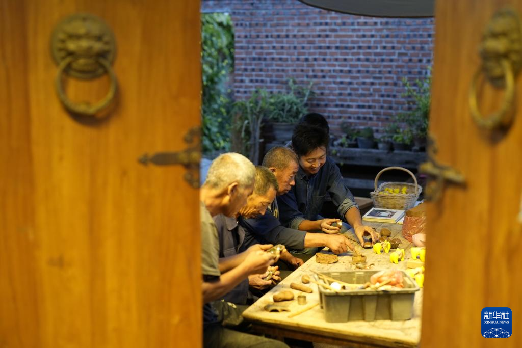 9月13日,市民在河北省樂亭縣一處泥塑工作室內制作泥塑。