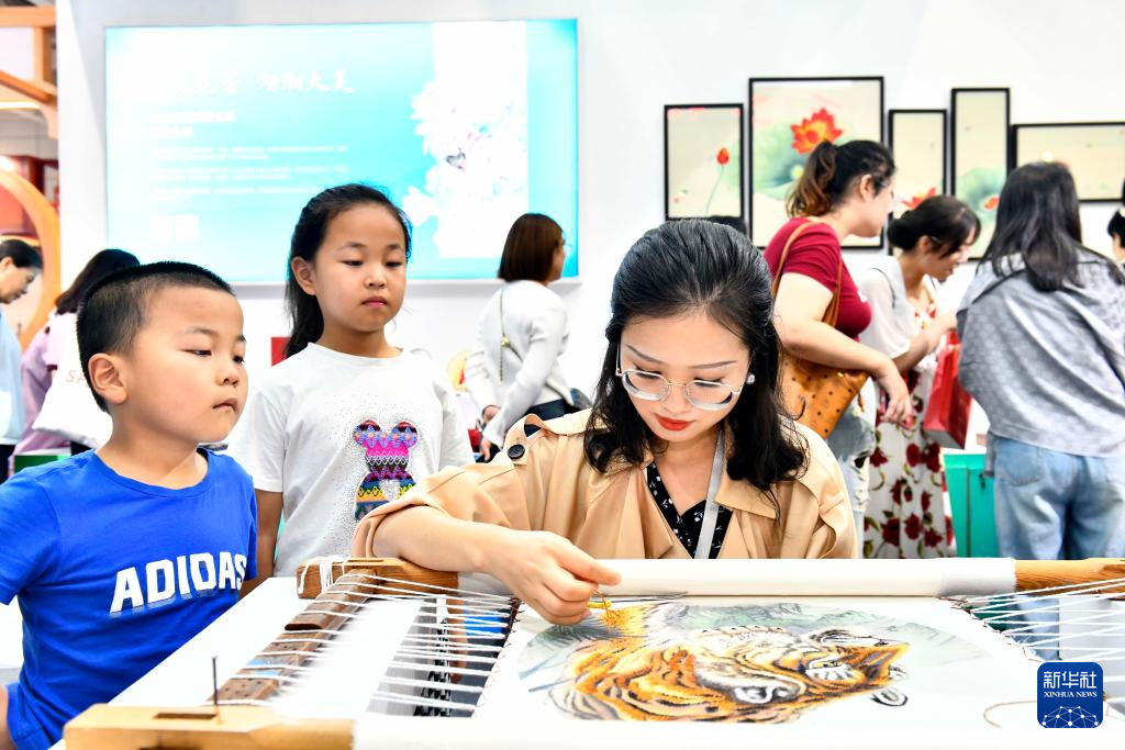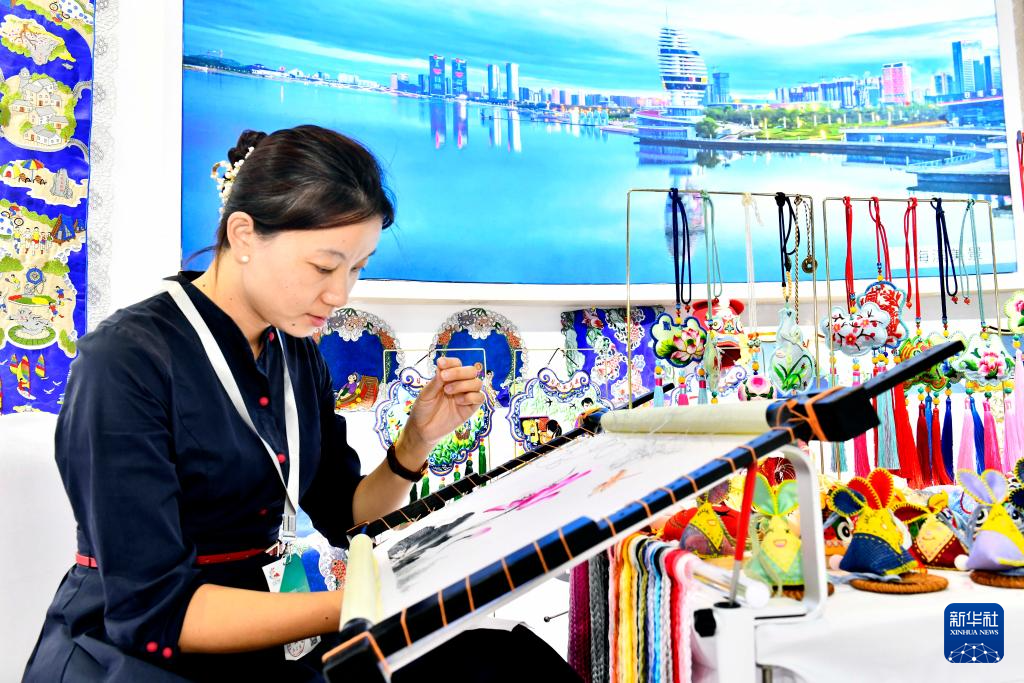 9月16日,在山東國際會展中心,來自湖南的非遺傳承人現場展示湘繡技藝。