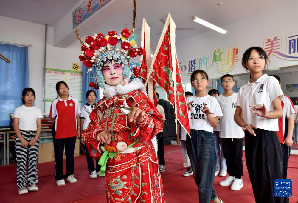 9月19日,威縣亂彈傳承人時敬華向白果樹中心小學學生傳授亂彈技藝。
