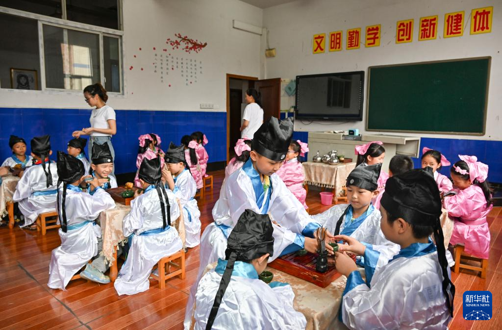 9月20日,重慶市忠縣烏楊小學茶藝社團的學生在學習茶藝。